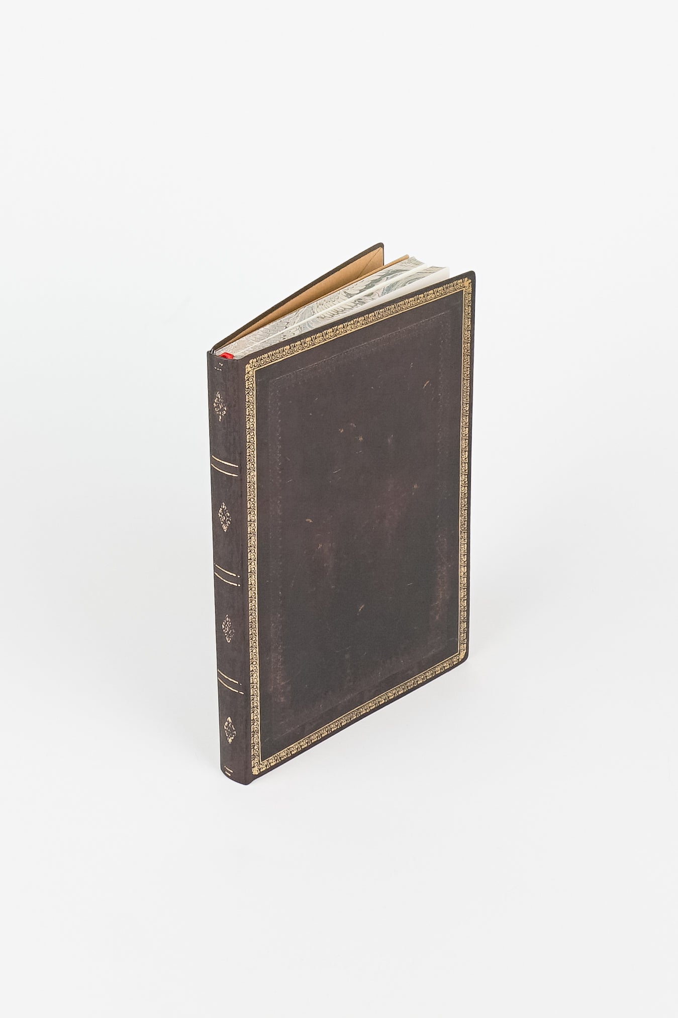Capturando o sabor das encadernações de couro finamente forjadas em estilo renascentista, este Journal Black Moroccan (Old Leather) presta homenagem ao artesanato de delicadas ferramentas de ouro. A beleza atemporal de um livro de couro antigo é trazida ao presente na capa deste Journal marrom rico e intrincadamente decorado.