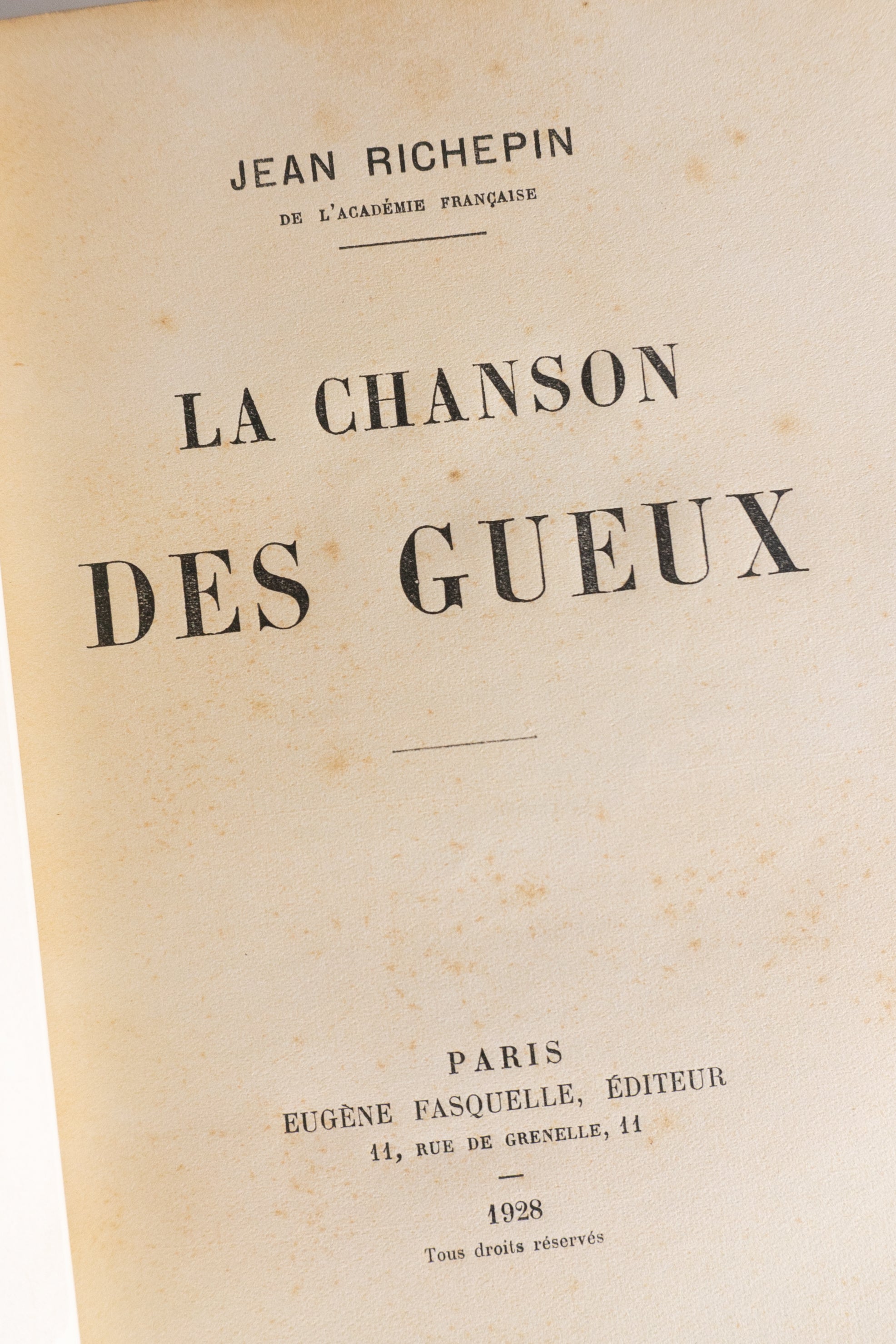 Este exemplar é uma das edições posteriores já consolidadas, publicada quando o autor já havia ingressado na Académie Française, revelando o percurso singular de um poeta que começou como escandaloso e terminou consagrado.