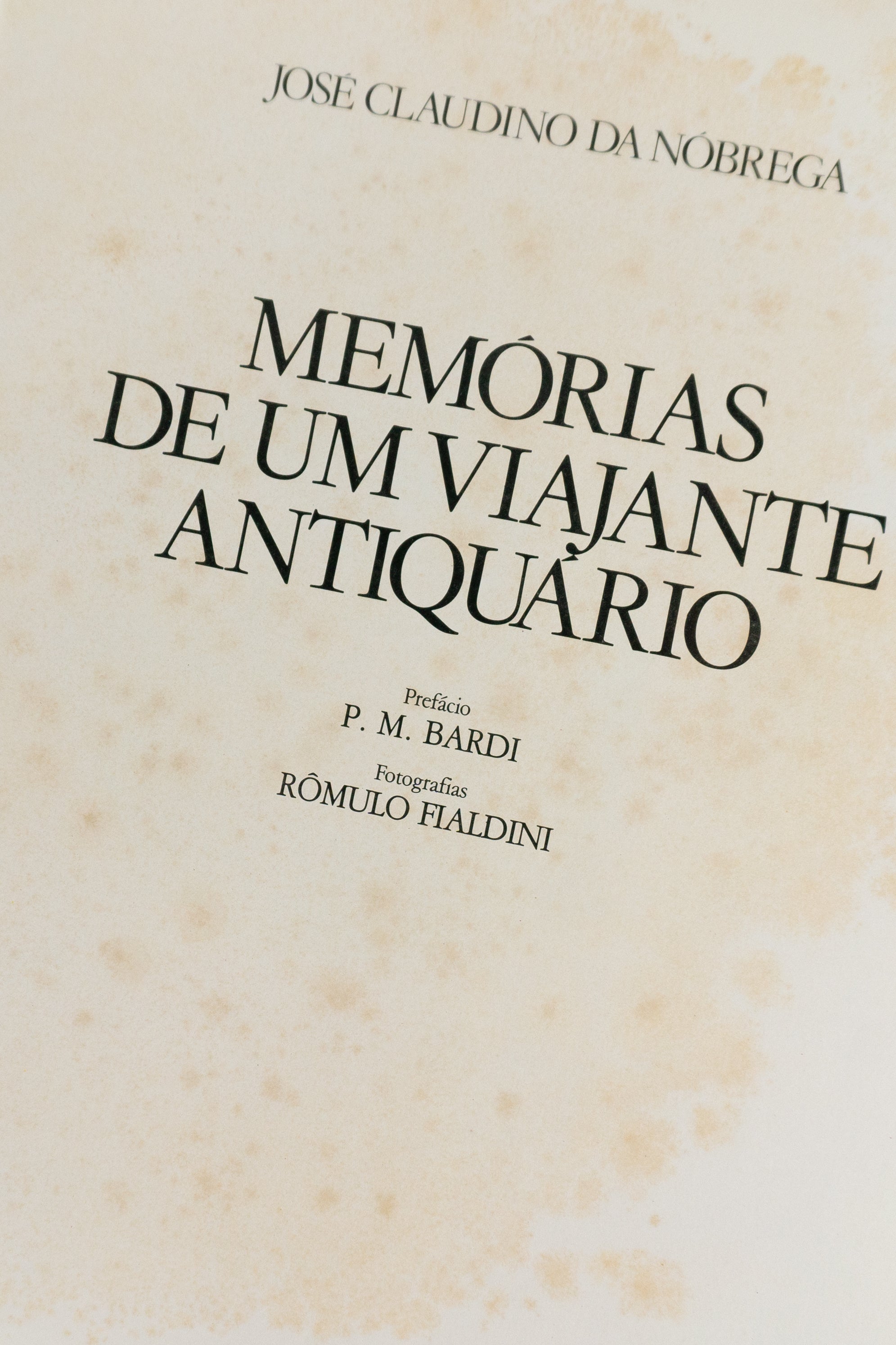 Memórias de um Viajante Antiquário, de José Claudino da Nóbrega, é obra de caráter memorialístico e cultural, na qual o autor registra suas experiências e vivências no universo do antiquariato, refletindo sobre objetos, coleções, história e memória. O texto dialoga com o patrimônio material e simbólico, revelando o olhar de um viajante atento às transformações culturais e às permanências do passado. A edição conta com prefácio de P. M. Bardi e fotografias de Rômulo Fialdini, elementos que enriquecem o valor documental e estético do volume, conferindo-lhe interesse não apenas literário, mas também artístico e historiográfico.