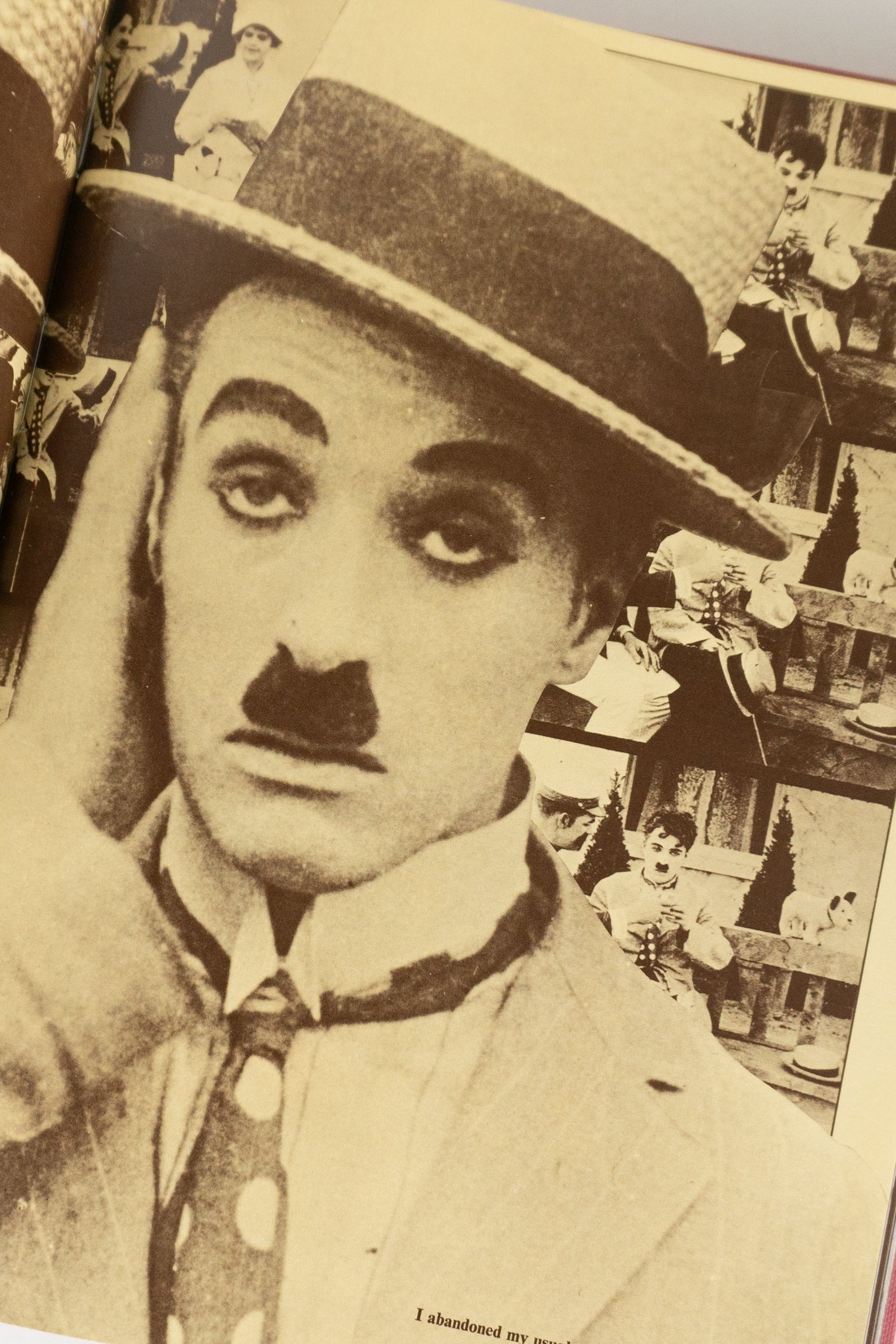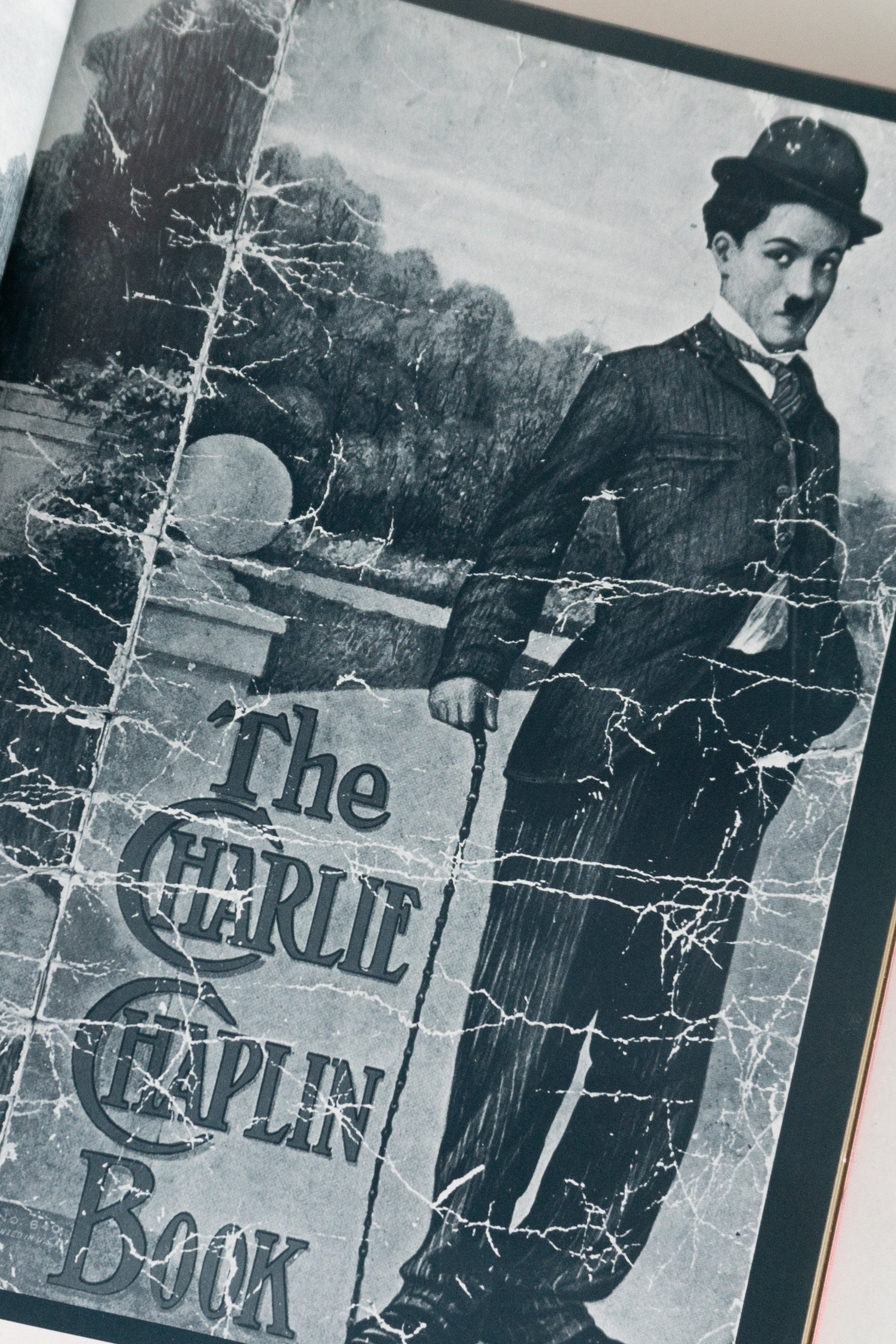 Livro ilustrado com fotografias e imagens relacionadas à carreira de Charles Chaplin.