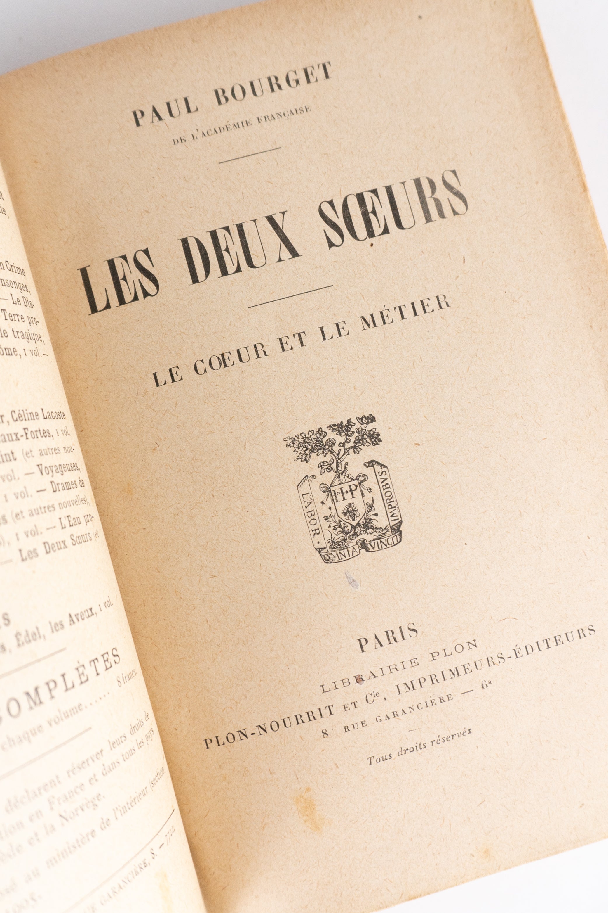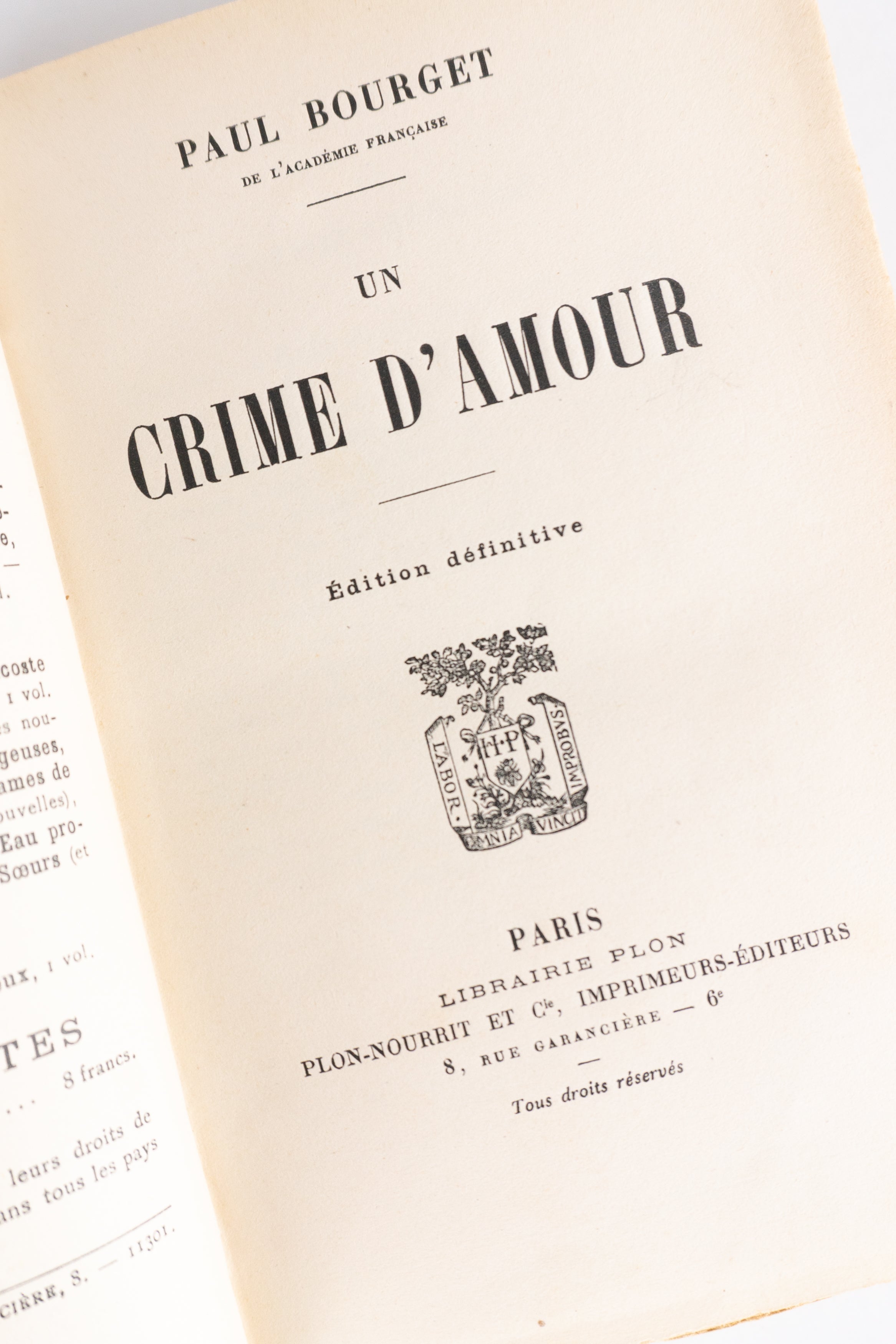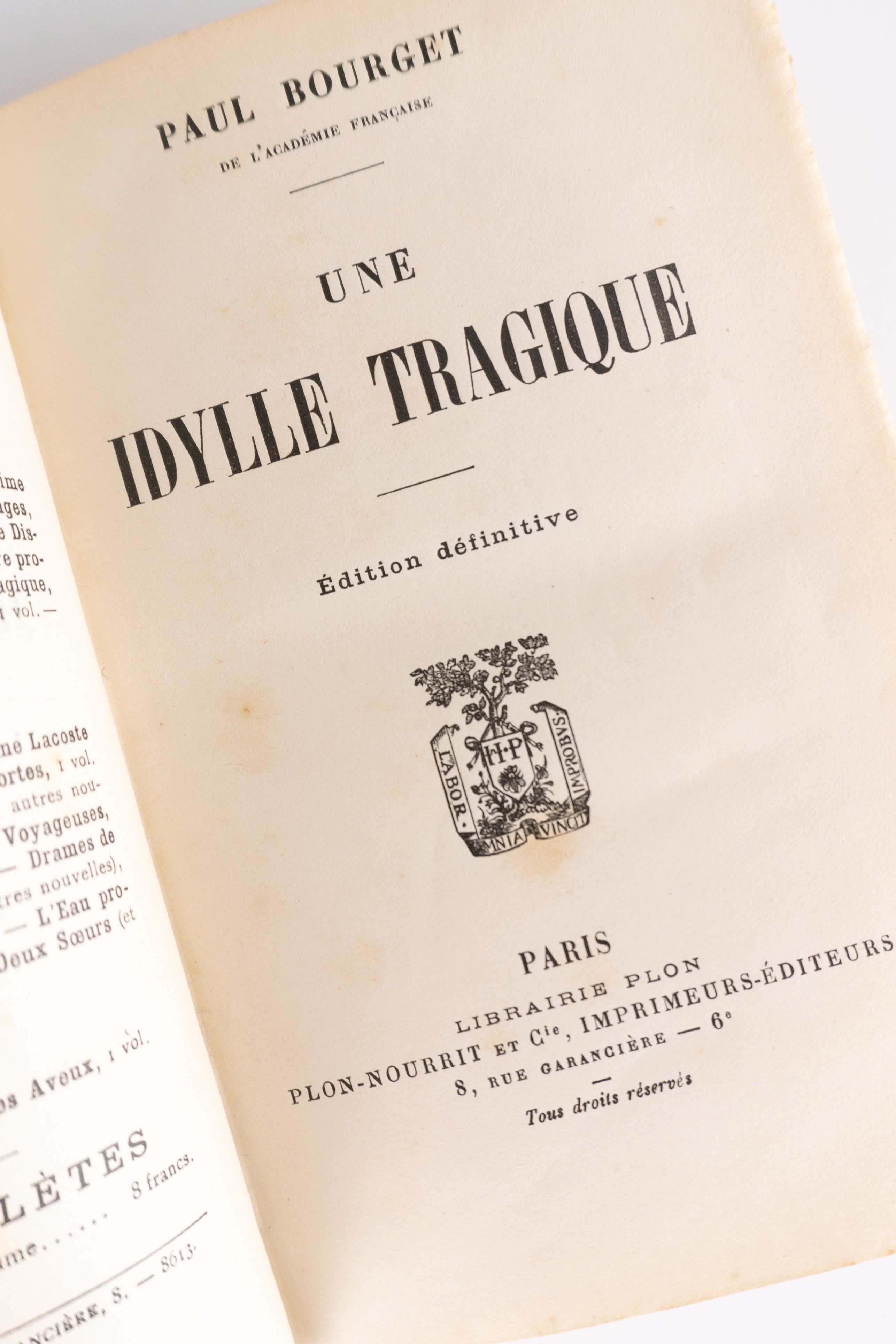Conjunto de seis romances de Paul Bourget (1852–1935), um dos principais romancistas franceses da Belle Époque, conhecido por seus romances psicológicos e retratos da sociedade burguesa europeia. Autor de grande sucesso em seu tempo, tornou-se membro da Academia Francesa em 1894 e publicou obras amplamente lidas dentro e fora da França.