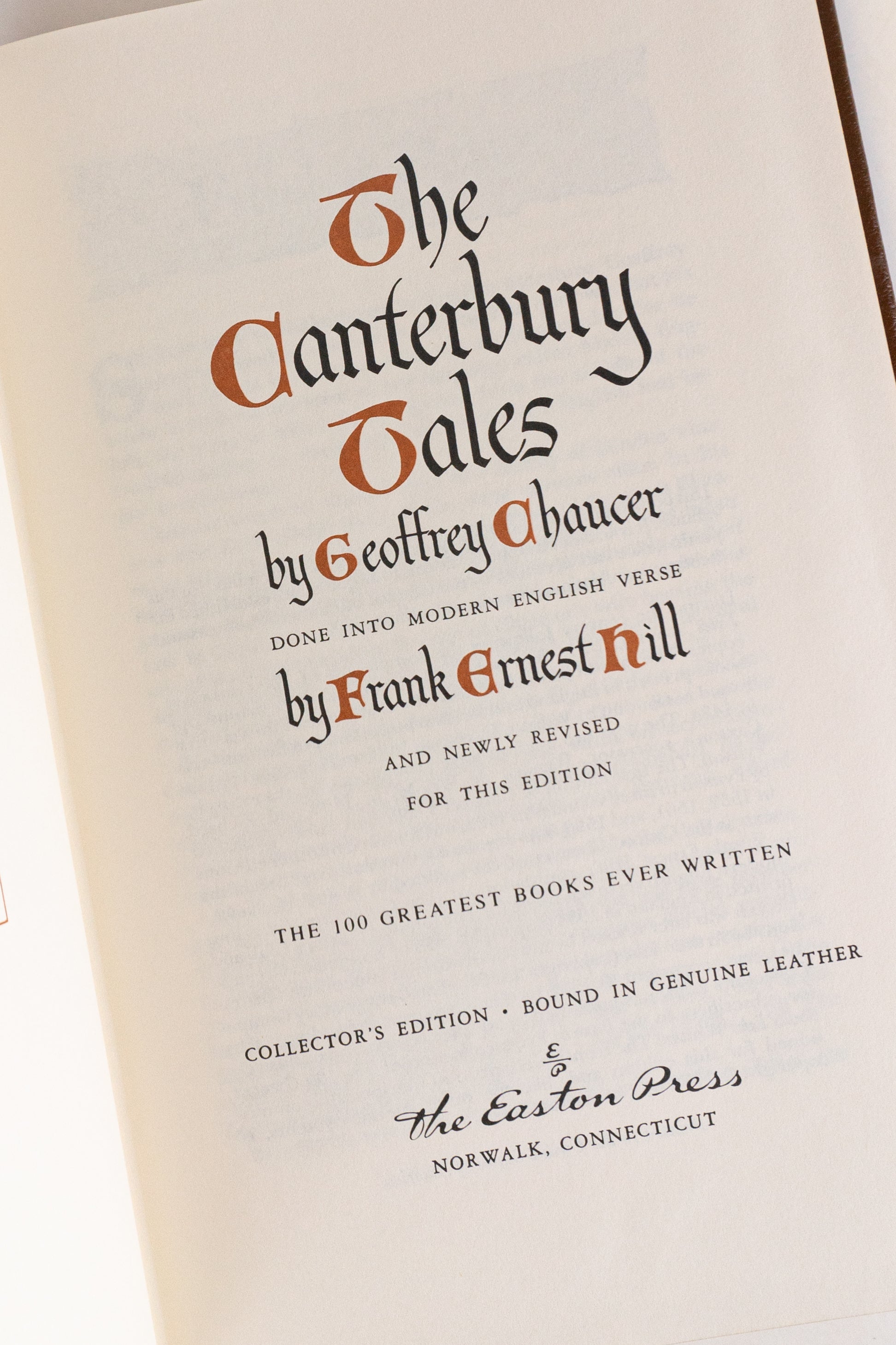 A tradução moderna de Hill foi originalmente preparada para a Limited Editions Club em 1934, posteriormente revisada e publicada com ilustrações de Arthur Szyk. Esta edição luxuosa da Easton Press pertence à série The 100 Greatest Books Ever Written e foi impressa em papel neutro de qualidade arquivística, com encadernação em couro legítimo e detalhes editoriais especialmente comissionados.